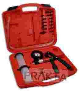 RĘCZNA POMPKA PRÓŻNIOWA ZAKRES PRACY -1 BAR DO 4 BAR Pompka próżniowa idealnie nadająca się do odpowietrzania układów hamulcowych, regulatora ciśnienia paliwa, układu wspomagania kierownicy, itp. Wytwarza podciśnienie do -1 Bar oraz ciśnienie do 4 Bar. Idealna do sprawdzania szczelności przewodów, zaworów, wysysania i odpowietrzania hamulców i hydraulicznie sterowanych sprzęgieł. Regulację ciśnienia / podciśnienia uzyskuje się poprzez ściskanie spusty na pompce, nie ma potrzeby dodatkowego zasilania prądem czy sprężonym powietrzem. Zestaw wyposażony jest w: - Metalowa pompka z manometrem w zakresie -1 do 4 bar - Przewód elastyczny o średnicy 6mm i długości 600mm - zestaw adapterów - 2 pojemniki