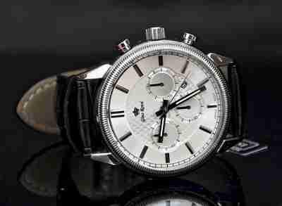 -tarcza jasna ze srebrnymi dodatkami z imitacją chronografu