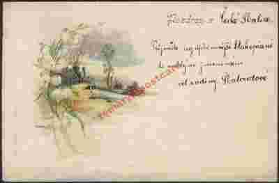 Gałązka konwalii pejzaż mostek 1900r.