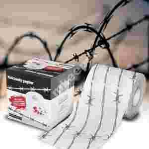 Dane techniczne/instrukcja: Papier toaletowy z nadrukowanym drutem kolczastym. Świetny pomysł na śmieszny prezent.