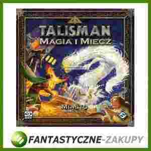 Miasto kusi swym bogactwem i możliwościami…Dla odważnych podróżników poszukujących Korony Władzy, Miasto jest miejscem, w którym drzemie wielki potencjał, ale i równie wielkie zagrożenie. Przemierzając ulice, przyjezdni niechybnie napotkają najlepszych rzemieślników oraz zamożnych kupców, ale i bezwzględnych przestępców czy tajemniczych nieznajomych. Pośród wysokich wież i tętniących życiem ulic, liczne sklepy oferują różnorakie zbroje, oręż, wierzchowce i inne towary. Można tutaj nabyć zaczarowane przedmioty, mikstury oraz zaklęcia. Pobierając właściwe nauki można wzmocnić ciało i umysł, a przepowiednie pozwolą poznać swój los.Dla tych, którzy posiadają trochę złota na zbyciu, wizyta w Mieście może okazać się najlepszym sposobem na przetrwanie podczas dalszej podróży po najgroźniejszych krainach królestwa. Okazje kryjące się w murach Miasta mogą przeważyć szale życia i śmierci w Dolinie Ognia!…a za każdym rogiem czai się niebezpieczeństwo i bezprawie.Rozszerzenie Miasto wprowadza do gry nową Krainę, czekającą na odkrycie przez śmiałych bohaterów. Specjalnie dopasowana plansza i ponad 100 nowych kart budzi do życia tę gwarną metropolię. Sześciu nowych Poszukiwaczy, każdy posiadający własną, przepiękną figurkę, zapewni graczom całkowicie nowe, cudowne doświadczenia.Odwiedź Miasto, odważny podróżniku, i zachwyć siębogactwem skrywanym za jego murami!ZAWARTOŚĆ PUDEŁKA:1 instrukcja, 1 plansza Miasta, 82 karty Miasta, 12 kart Zbrojowni, 12 kart Chowańców, 16 kart Magicznego Emporium, 16 kart Eliksirów, 8 kart Stajni, 18 kart Listów Gończych, 4 karty Neutralnego Charakteru, 3 karty Alternatywnych Zakończeń, 6 kart Poszukiwaczy, 6 plastikowych figurek.Uwaga! To nie jest samodzielna gra, do rozgrywki potrzebna jest gra Talisman: Magia i Miecz.