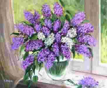 Galyna Bogiel Bzy olej 50x60cm sygnowany duży