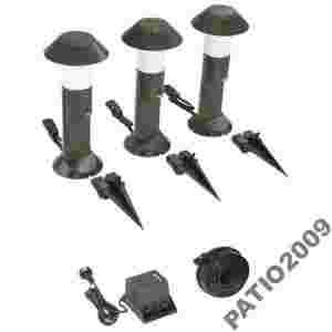 Łatwa instalacja bez elektryka. Zestaw zawiera trzy lampy, jeden transformator, kabel instalacyjny i szpilkę. Wszystkie elementy niezbędne do podłączenia.