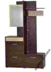 Garderoba G - 1   wykonana jest z wysokiej jakości płyty laminowanej o grubości 18mm w kolorze Orzech ciemny wstawki w kolorze Klonu.