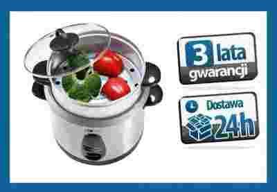 Profesjonalny sprzęt za rozsądną cenę! 2 w 1: urządzenie do gotowania ryżu i na parze w jednym Urządzenie do gotowania ryżu ze stali szlachetnej INOX Umożliwia proste przygotowywanie i podgrzewanie wszystkich rodzajów ryżu, roslin strączkowych, zup, zbóż Dodatkowaaluminiowa wkładka do gotowania na parze do przygotowania warzyw, ziemniaków i ryb bez utraty witamin! Energooszczędne– czas krótszy o 45% w porównaniu ze zwykłymi płytami kuchennymi Bezpieczna pokrywa szklana z otworem spustowym pary Zdejmowany garnek z powłoką antyadhezyjną (pojemność maks. 3l wody) Maksymalnie można w nim ugotować 1,5 kg ryżu Automatyczny tryb utrzymania ciepła po zakończeniu gotowania Automatyczne wyłączanie, energooszczędne Termoizolacyjne uchwyty Odłączalny przewód elektryczny Zabezpieczenie: włączanie tylko przy założonym garnku 3 lampki kontrolne: gotowanie i podgrzewanie Akcesoria: łyżka do ryżu, miarka (maks. 160 ml)