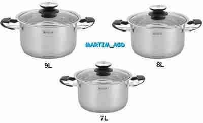 Zestaw garnków z trwałej wysokiej jakości stali nierdzewnej 18/10 chromowo-niklowej(klasa T30x- stal chirurgiczna) z kapsułowym dnem o grubości 1,7 cm.