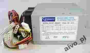 Zasilacz komputerowy, 600W, spełniający normy PFC oraz CE, wyposażony w dwa wentylatory.