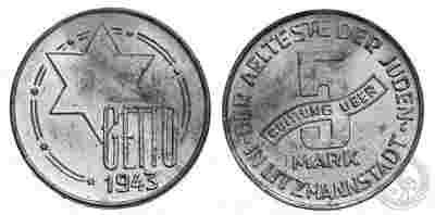 GETTO ŁÓDŹ - moneta - 5 Marek 1943 - 1