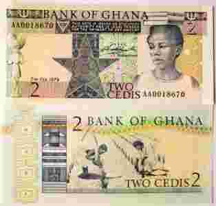 GHANA 2 CEDI 1979 P-18 PREFIX AA UNC