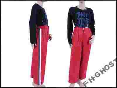 Wystawione spodnie są w kolorze czerwonym.