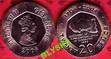 GIBRALTAR /KM-104?/ 20 PENCE 2004 r.Czaszka