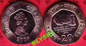 GIBRALTAR /KM-104?/ 20 PENCE 2004 r.Czaszka