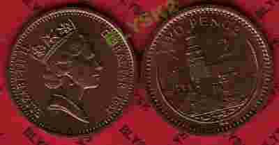 GIBRALTAR /KM-21/ 2 PENCE 1994 AA Latarnia Morska