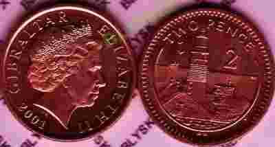 GIBRALTAR /KM-744/ 2 PENCE 2001 AB Latarnia Morska