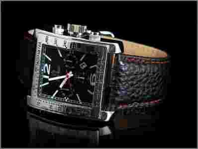 Koperta w kolorze srebrnym , tarcza czarna , indeks biały - dobrze czytelny, wskazówki również białe , sekundowa w kolorze czerwonym . Pasek w kolorze czarnym z czerwonymi przeszyciami na krawędziach , wykonany z skóry naturalnej . Szkło wypukłe- odporne na zarysowania . Chronografy na tarczy są imitacją , jednak zegarek jest wyposażony w datownik który pokazuje dzień miesiąca .