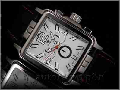 Koperta w kolorze srebrnym , tarcza jasna , indeks srebrny - dobrze czytelny, wskazówki również srebrne z połyskiem . Pasek w kolorze czarnym z ozdobnymi przeszyciami w kolorze czerwonym na krawędziach , wykonany z skóry naturalnej . Szkło wypukłe- odporne na zarysowania . Chronografy na tarczy są imitacją .