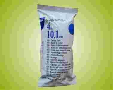 Scotch Cast PLUS - jest to opaska usztywniająca zastępująca gips, wykonana z tkanego włókna nasyconego żywicą poliuretanowa. Poddana działaniu wilgoci sztywnieje na skutek reakcji chemicznej pomiędzy żywicą i woda. Podczas twardnienia aktywowana jest również substancja zmniejszająca lepkość żywicy. Jest ona hipoalergicznym detergentem używanym m.in. w dziecięcych szamponach i w płynach płuczących soczewki kontaktowe. Powoduje ona większą " gładkość " opatrunku i zmniejsza lepienie się żywicy do rak lekarza / gipsiarza. Mimo wszystko przed założeniem opatrunku zaleca się nałożenie zwykłych, nie sterylnych rękawiczek ( gumowe lub latexowe ). Twardnienie trwa ok. 3-8 min. Całkowita twardość Scotchcast Plus uzyskuje po ok. 30-45 min. Charakteryzuje sie łatwością nakładania typowa dla gipsu połączona z wartościami, jakie niesie ze sobą syntetyczna taśma usztywniająca. Wynikiem tego jest mocny opatrunek usztywniający, trwały i lekki, doskonale dopasowany o gładkiej powierzchni. Pomimo cienkiej warstwy włókna szklanego Scochcast jest równie wytrzymały jak gips a dodatkowo jest wodoodporny umożliwiając pacjentowi kąpiel. Scotchcast Plus jest całkowicie bezpieczny w stosowaniu. Opaska dzięki tkaniu jest w pełni przepuszczalna dla powietrza i umożliwia suszenie wewnętrznej warstwy izolacyjnej po kąpieli. Jest całkowicie przezierny dla promieni rentgenowskich, nie trzeba zwiększać dawki.
