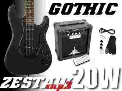 GITARA GOTHIC BLACK MATT +WZMACNIACZ 20W MP3,PILOT
