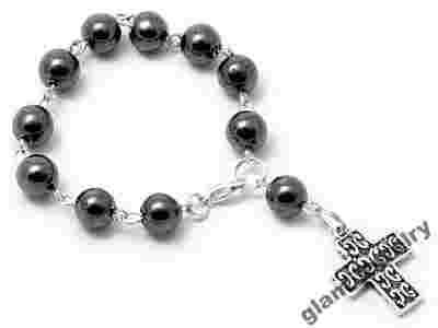 Różaniec wykonano z naturalnych kamieni HEMATYTU