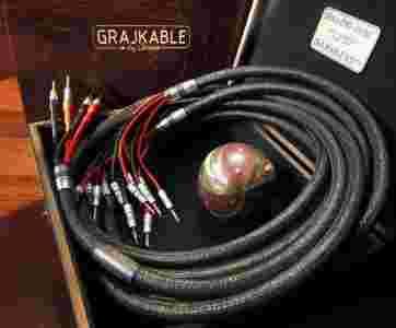 Przedmiotem aukcji jest najwyższy model kabla głośnikowego z oferty Graj-Endu, czyli Grajkabel Numer Dwa. Długość 2x2,5 m, zakończony wtykami bananowymi, wersja bi-wiring. Dostępna jest też wersja mono-wiring zakończona widełkami.
