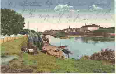 Glogau Głogów Panorama Odry, zamek, łodzie, sieci
