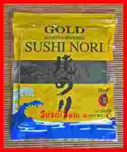 50 arkuszy o wadze aż 140 gram, chyba jedyne o tej wadze i tak wysokiej jakości. Nori zamknięte w szczelnym opakowaniu strunowym, opakowanie zawiera absorbent wilgoci (nie do jedzenia), wyrzucamy dopiero po zużyciu wszystkich arkuszy. Należy przechowywać szczelnie zamknięte w suchym miejscu.