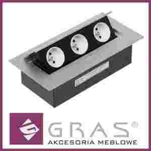 Przedłużacz biurkowy to zestaw trzech gniazd sieciowych (230V) w praktycznej obudowie chowanej w blacie.