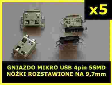 GNIAZDO MIKRO USB 5 SMD 9.85x6.80x2.95mm x5 szt