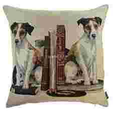 Gobelinowa poszewka 45x45 cm TERIERY W BIBLIOTECE