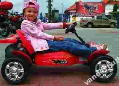 Dzieci na zdjęciach są w wieku 5 i 7 lat . Pojazd testowało też dziecko 11 letnie . Bolid jako jeden z niewielu pojazdów zapewnia równocześnie olbrzymią wygodę i wiele przestrzeni na nogi dziecka. F1 jeździ po każdej nawierzchni , pokonuje nawet większe wzniesienia i nierówności. Wygląda niepozornie ,ale jego możliwości są ogromne.