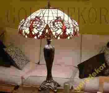 LAMPA WYKONANA ZOSTAŁA RĘCZNIE, Z NAJWYŻSZEJ KLASY SZKŁA WITRAŻOWEGO, ŁĄCZONEGO CYNĄ.
