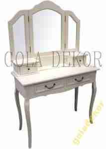 Stolik z dwoma szyfladami stanowi podstawę dla lustra, z dwoma mniejszymi szufladkami.
