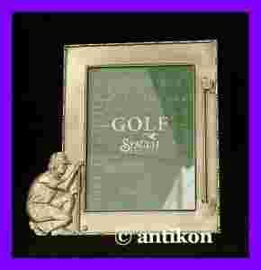 Świetna prostokątna ramka wykonana z cyny. Ozdobiona postacią golfisty. Z tyłu posiada podpórkę do postawienia. Ten zachwycający wyrafinowaną prostotą i wielką dbałością o szczegóły przedmiot jest stylowym elementem dekoracyjnym, który z pewnością upiększy każde pomieszczenie. Ramka solidna i ciężka. Stan idealny.