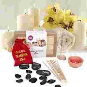 Na szczęście nie musisz wydawać kilkuset złotych na wizytę w takim przybytku, aby osiągnąć podobną atmosferę i efekt. Wystarczy mieć Zestaw gorących kamieni do masażu! W zestawie znajdziesz wszystko, co potrzebne jest do przygotowania zmysłowego i bardzo romantycznego wieczoru we dwoje: 12 kamieni różnej wielkości, zapakowanych w atłasowy woreczek, komplet kadzidełek, świecę zapachową, podstawkę na świecę.