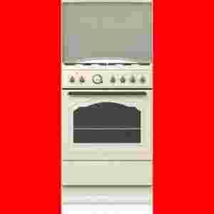 Kuchnia gazowo-elektryczna, o szerokości 60 cm, pojemności 65 l, z funkcją grilla, wymuszonym obiegiem powietrza, podwójną szybą w drzwiach oraz z żeliwnymi rusztami.