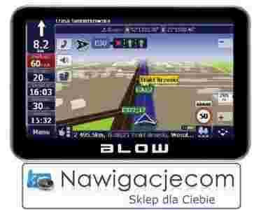 BLOW GPS43FBT może być dostarczane z oprogramowaniem nawigacyjnym lub bez, pozwalając użytkownikowi wybrać jego ulubiony program. W wersji z zainstalowanym oprogramowaniem, za wyznaczanie tras odpowiada najnowsza AutoMapa 6.8.1, zawierająca dokładne plany nawigacyjne kilkudziesięciu tysięcy miast i ponad 640 tysięcy Użytecznych Punktów (POI). Użytkownicy mogą korzystać z asystenta pasa ruchu, który ułatwia pokonywanie skomplikowanych skrzyżowań i rozjazdów. Dostępne są również informacje o progach zwalniających, sygnalizacji świetlnej i uaktualnione pozycje słupków pikietażowych, pomocne przy korzystaniu z łączności CB. Początkujący kierowcy ucieszą się też na pewno z trybu „łatwej” trasy, który stara się omijać skręty w lewo, unika zawracania, a tam gdzie to możliwe, nie prowadzi przez ronda wybierając drogi możliwie najwyższej kategorii.