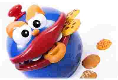 Ciasteczkowy potwór jest bardzo wrażliwy i czuły na nacisk - im mniej łakoci tym wieksze prawdopodobieństwo, że paszcza się zamknie.