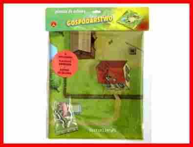 Gospodarstwo to plansza z plastikowej folii przedstawiająca gospodarstwo wiejskie. Namalowane są na niej pola, drogi, łąki, budynki gospodarcze, maszyny rolnicze, dom, zwierzęta itp. Te wszystkie elementy tworzą wspaniałe tło i inspirację do zabawy w gospodarstwo wiejskie. Użycie planszy sprawia, że zabawa jest bardziej atrakcyjna i daje wiele przyjemności.