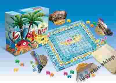 plansza 120 żetonów (24 sztuki w 5 kolorach) 4 statki – parawany 15 figurek krabów (po 3 w 5 kolorach) woreczek na żetony 4 znaczniki punktacji poławiaczy 5 znaczników punktacji krabów instrukcja