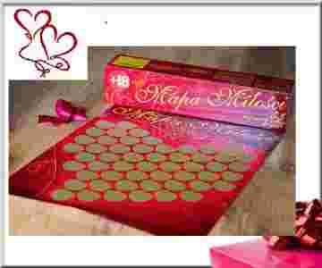 - Mapa Miłości - kolorowe serce pokryte złotą zdrapką, zawiera 53 pozycje miłosne.