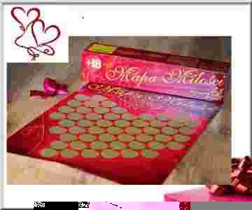 - Mapa Miłości - kolorowe serce pokryte złotą zdrapką, zawiera 53 pozycje miłosne.