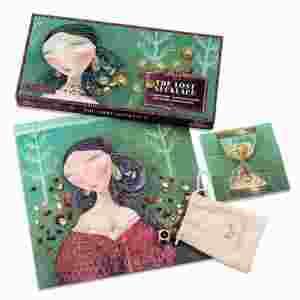 Zła czarownica rzuciła klątwę na piękną księżniczkę. Rozerwała na strzępy jej magiczny naszyjnik i rozrzuciła 40 pereł w ogrodzie. Aby unieść klątwę perły muszą zostać odnalezione nim ostatnie złote ziarnko piasku opadnie na dno klepsydry. Gra kreatywna z klejnotami dla dzieci o sprawnych rączkach.