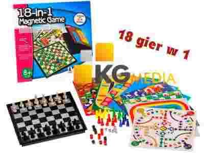 Zestaw 18 gier: Bieg z przeszkodami, Dziewięciu mężczyzn Morrisa, Wszędzie, Football, Gęś, Manji Szachy Route, Space – venture, Szachy - pociąg, Baseball, Ludo, Szachy, Tryktrak, Warcaby, Warcaby chińskie, Węże i drabiny, Wyścig, Wyścig F1