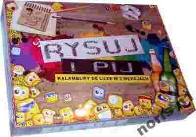 RYSUJ I PIJ to towarzyska gra imprezowa oparta na idei kalamburów - rysowania i odgadywania. Dobrą zabawę i mnóstwo śmiechu gwarantuje konieczność losowania co mamy narysować: POSTAĆ, CZYNNOŚĆ, MIEJSCE - powstają bowiem z tego przezabawne kombinacje. Jeśli dodać do tego fakt, że w każdej kolejce każdy z graczy musi rysować i zgadywać, oraz ciekawy system kar i nagród to mamy już GWARANCJĘ udanej imprezy!!