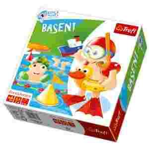 Kto da nurka, sprawnie pływa – na basenie dziś wygrywa! Gra edukacyjna Basen! to emocjonująca gra stworzona z myślą o tych, którzy chcą nauczyć swoich najmłodszych pływaków zasad bezpiecznego zachowania podczas wodnych harców, rozwijając w nich jednocześnie umiejętność liczenia i spostrzegawczość. Najlepsi pływacy wiedzą, że w wygranej pomoże im też umiejętność strategicznego myślenia. Zawodnicy ścigają się na 4 torach, a na każdym ukryły się przedmioty, które trzeba wyłowić. Zwycięża ten, kto jako pierwszy wyłowi 4 z nich. W bezpiecznym wyścigu pomagają dmuchane materace i koła ratunkowe, a nad jego przebiegiem czuwa ratownik. Dodatkową frajdę zapewnia kolorowa plansza w kształcie basenu.