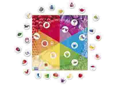 Układanka oraz dwie gry z kolorową kostką. Gra ćwiczy pamięć i zdolność koncentracji, uczy rozpoznawać kolory, wzbogaca słownictwo. 1-6 graczy; plansza o wym. 34 x 34 cm; 36 kartoników; od 3 latKlocki z prostym systemem łączenia. Każdy z nich zawiera kolorowy obrazek. Zadaniem dzieci jest m.in. odszukać 6-elementowe zbiory z uzasadnieniem dlaczego właśnie te klocki do siebie pasują. Zabawa oprócz ćwiczeń słownikowych służy również nauce kolorów, tworzenia historyjek, ćwiczy spostrzegawczość oraz refleks. 66 elem.