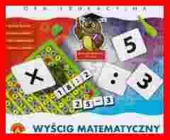 "Wyścig matematyczny- big"- emocjonująca gra i znakomity trening szybkiego liczenia. Z rozłożonych na stole liczb i znaków matematycznych należy ułożyć jak najszybciej działanie, którego wynik będzie zgodny z liczbą pola planszy, na którym stanie pionek. Gra zapewnia dobrą zabawę, uczy szybkiego liczenia i spostrzegawczości.