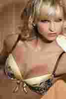 Seksowny biustonosz w kolorze złotej pustyni. Jedwabiście gładki u góry, przewiązany swobodnie wstążeczką, w dole miseczek i po bokach pokryty jest zwiewną koronką imitującą tygrysie paski... Pokaż pazur!
