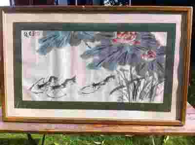 Grafika, daleki Wschód, krewetki i lilie