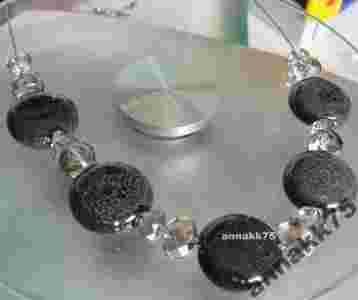 GRAFITOWY SZARY CZARNY SREBRNY NASZYJNIK KORALE